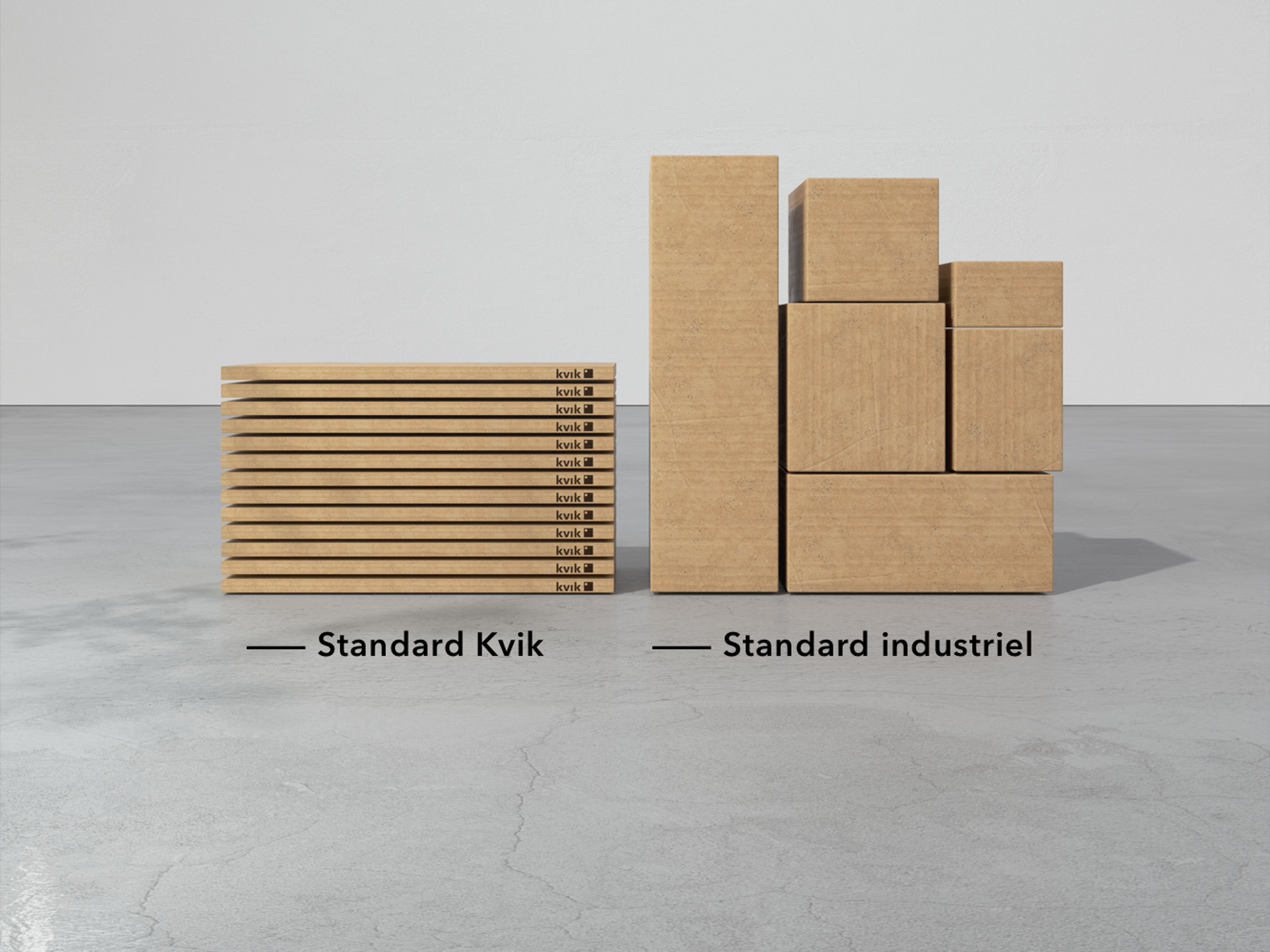Depuis le début, nous cherchons à défier les standards industriels et les manières de procéder. Nous avons constaté qu’une fois emballées à plat, 26 cuisines en kit pouvaient être transportées par camion. C’est quatre fois plus de cuisines dans chaque camion que la norme du secteur, qui préconise d’expédier les cuisines assemblées. Nous vous faisons profiter de ces économies.